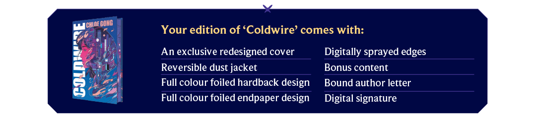 Chloe Gong is the author of our December YA ‘Neon Lies’ featured book: Coldwire. Read on to get the inside scoop from inspiration to favourite scenes and more!