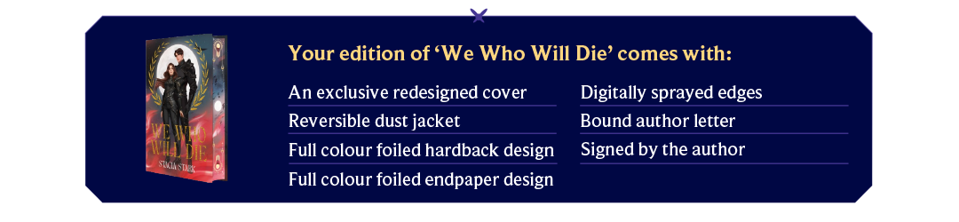 Stacia Stark is the author of our December Romantasy ‘Betray Me Again’ featured book: We Who Will Die. Read on to get the inside scoop from inspiration to favourite scenes and more!